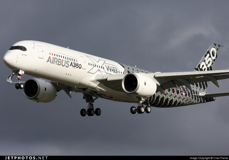 Kolos o celkové délce 66,8 m a výšce 17,05 m (ve variantě Airbus A350-900) pohání dvojice proudových turbodmychadlových motorů Rolls-Royce Trent XWB. Jejich výkon, odpovídající zhruba 140 vozům formule 1, umožňuje dosáhnout cestovní rychlosti 903 km/h.