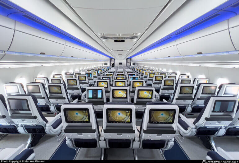 V padesáti řadách je vedle sebe celkem devět sedadel. Mezi třetím a čtvrtým a zároveň šestým a sedmým je ulička. Dopravce uvádí, že letadlo doletí 15 000 km a maximální vzletová hmotnost činí 280 tun. Letoun nabízí nejenom větší klid na palubě, kdy je hladina hluku 59 dB. Zásadním benefitem je i moderní filtrační systém, který na palubě zaručuje neustálou výměnu vzduchu.
